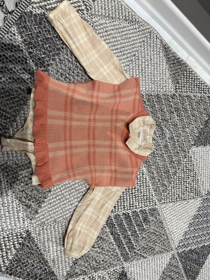 Fıt kesim, örgü süveter ve gömlek ikisi birlikte. bohem tarzda ve halter yaka. Sıcak bej ve gri ekoseli, günlük rahat kullanım için uygundur.