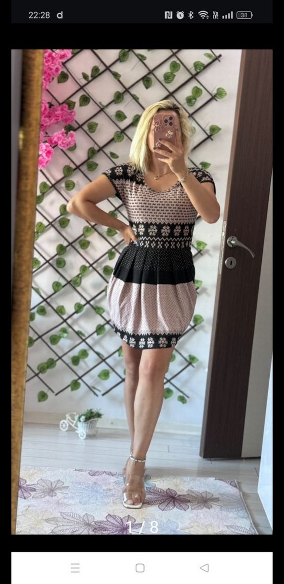 Piliselı, straplez yaka ve bağlama desenli, triko kumaştan kısa ve vücuda oturan elbise. Bohem tarz için uygun.