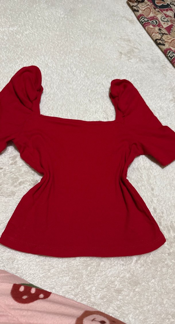 Kısa Prenses Kollu Kırmızı Triko Bluz