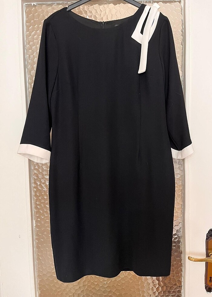 Siyah önünde kurdele detayı vardır. 44 bedene uygundur. Gayet şık bir abiye az kullanılmıştır.