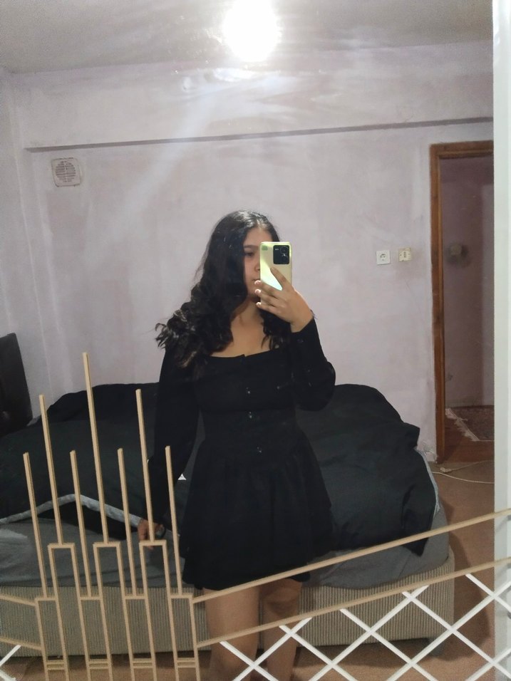 kısa siyah gotik elbise, yakalı ve uzun kollu. volan detaylı, sentetik kumaştan, parti için uygun. hiç kullanılmadı köstebek marka s-m uyumludur Y2K pantolonlarla takas olur