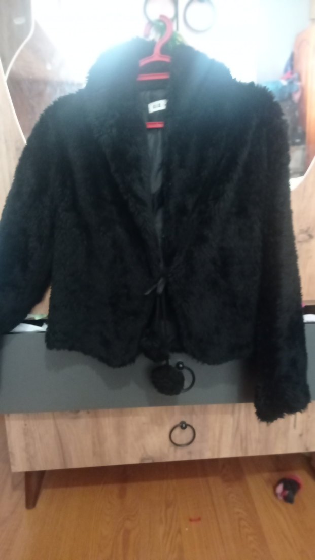Kısa Siyah Kürklü Kadın Ceket