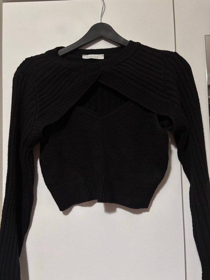 Yumuşak örgüden üretilmiş, kısa ve vücuda oturan siyah kazak. Uzun kollu ve yuvarlak yakalı, sade tasarımıyla günlük kullanıma uygun, rahat goth tarzı.