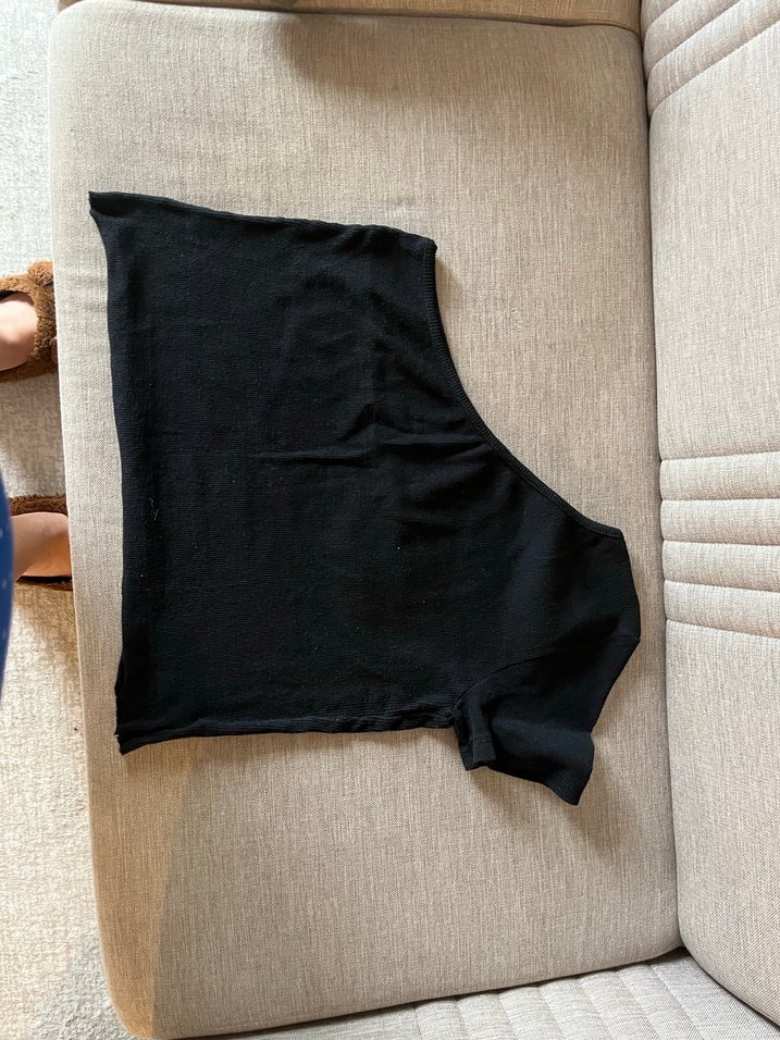Tekne yaka, kısa kollu, siyah Vücudu saran kesimi ve sade tasarımı günlük sokak modasına uygun şık bir parça. Ürünü sayılı kez giydim etek ucunu kendim kesmiştim ama kullanıma engel değil daha iyi oldu çünkü boyu uzundu esnek ve kumaşı var 3X large 2X large uyumlu