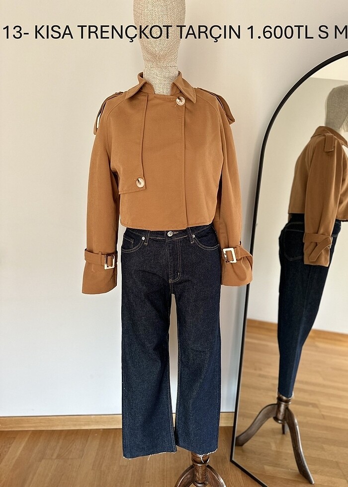 Kısa Trençkot Tarçın renk. Şuan 3 adet S, 2 adet M, 2 adet L bedenleri mevcuttur. Etiketli, kullanılmamış. İş değişikliğinden dolayı elimizdeki ürünleri uyguna satıyoruz. İade ve Değişim yapamıyoruz, anlayışınız için teşekkürler. Mağazalar ve satıcılar diğer kadın giyim tekstil ürünlerimize lütfen bakınız, toptan alınacaksa uygun fiyata bırakacağız. Teşekkürler.