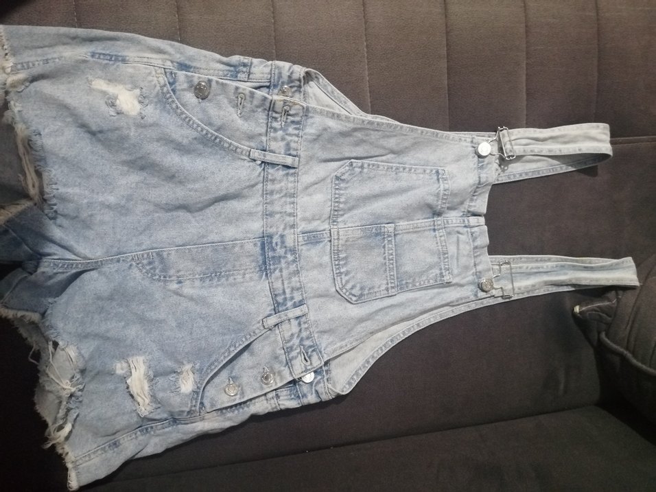 Düğmeli yandan ,kolsuz denim kısa tulum