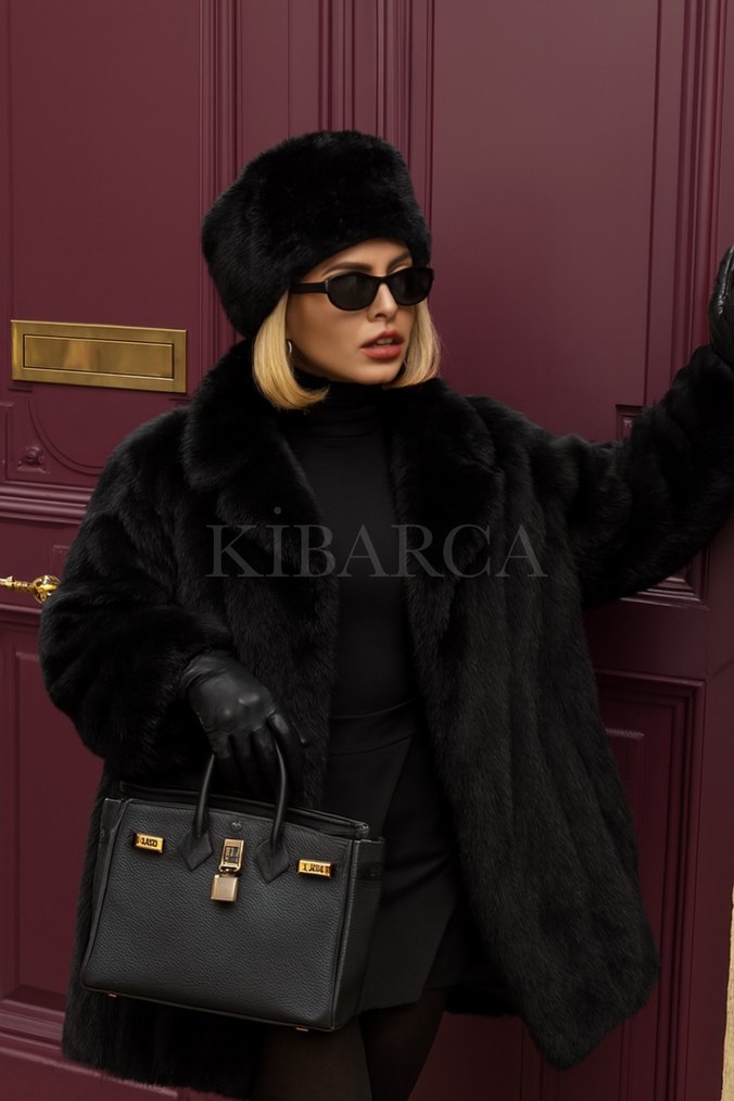 Kısa Tüylü Siyah Kürk Şapka Rus Kalpak