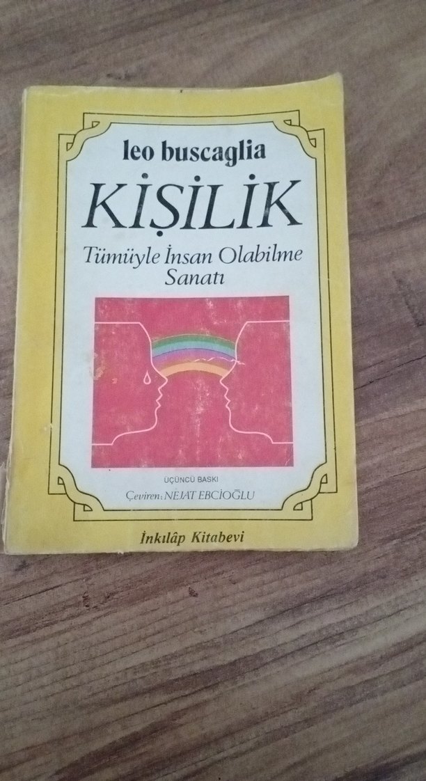 Leo Buscaglia'nın "Kişilik - Tümüyle İnsan Olabilme Sanatı" kitabı, Nejat Ebcioğlu tarafından çevrilmiş ve İnkılap Kitabevi tarafından yayımlanmıştır. Kişilik ve insan gelişimi üzerine bir eserdir. Kapak kisminda eskiden kalma yazılar var,rahatlıkla okunabilir fakat eski olduğu belli .