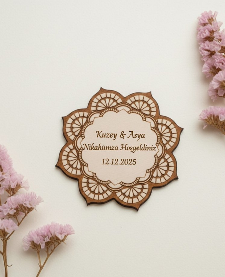 Özel gününüzü unutulmaz kılmak için tasarlanmış kişiye özel nikah magnetleri, şık ve sade tasarımıyla misafirlerinize anlamlı bir hatıra sunar. İsim, tarih ve isteğe bağlı mesaj ile kişiselleştirilerek hazırlanır. Ürün: Nikah Magneti Adet: 10 adet Tasarım: Kişiye özel (isim – tarih – mesaj) Kullanım: Buzdolabı ve metal yüzeyler için uygundur Hediye: Nikah, söz, nişan ve özel davetler için ideal Boyut: Standart magnet ölçüsü Üretim: Özenli işçilik, kişiye özel hazırlık Paketleme: Güvenli şekilde paketlenerek gönderilir Sipariş sonrası isim ve tarih bilgilerini iletmeniz yeterlidir. Farklı tasarım ve konseptlerde kişiye özel magnet modelleri için mağazama göz atabilirsiniz.