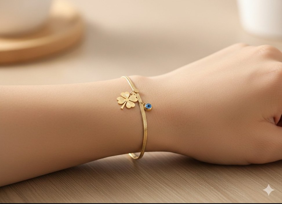 Kişiye Özel Baş Harfli Çelik Yonca Kalp Bileklik Çiftlere Özel