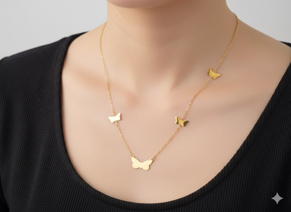 Kişiye Özel Baş Harfli Kelebek Çelik Kolye Paslanmaz Özel Kutulu