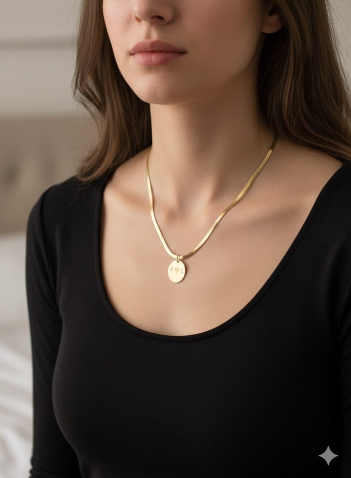 Kişiye Özel Çelik Kolye Lazer İsim & Harf Yazılı Yuvarlak Kolye