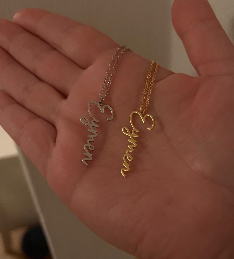 Kişiye özel Çelik isimli kolye istenilen isim renk yapılabilir. Parlak yazılı uzun zincir detaylı kolye . Minimalist sokak stili için günlük kullanıma uygun. ✨