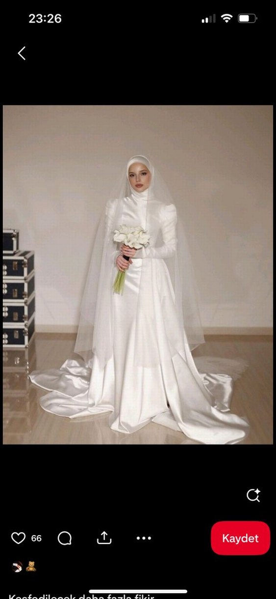 kişiye özel dikim fiyatıdır istenilen değişiklikler yapılabilir Yüksek yakalı ve uzun kollu, beyaz A kesim gelinlik. Sade, mütevazı ve klasik tarzda, normal kesim ve uzun boyda. Minimalist gelinler için uygun.