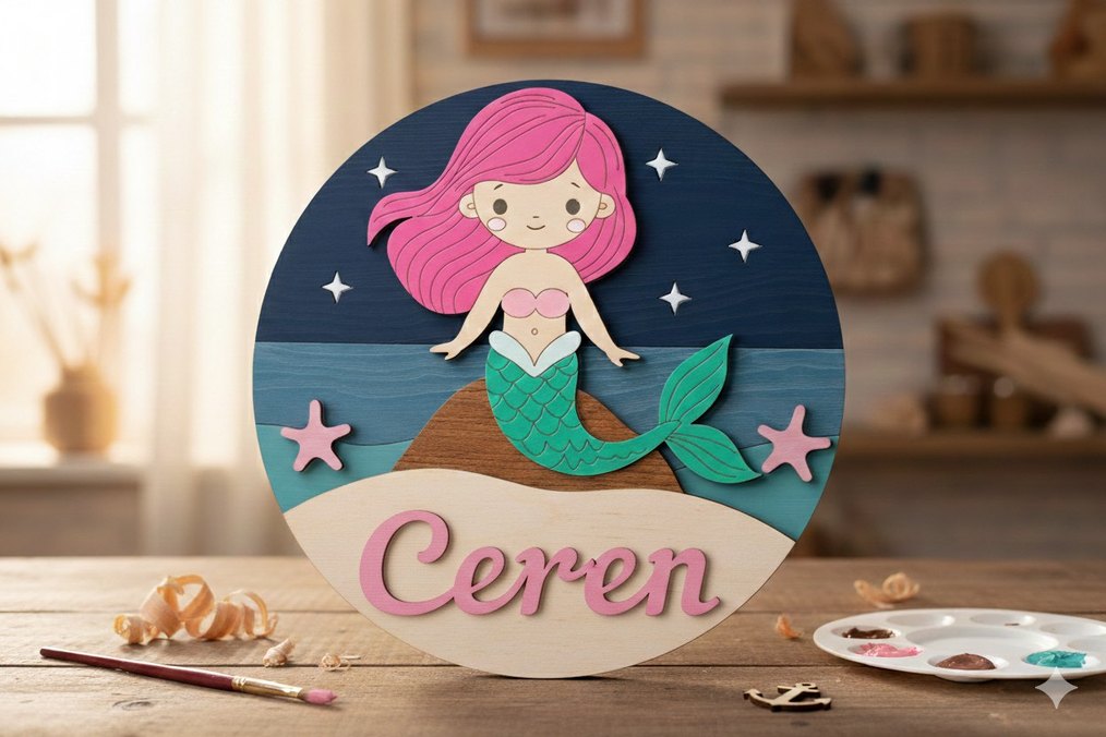 kişiye özel huş kontrplak duvar kapı panosu. ebat 30cm.