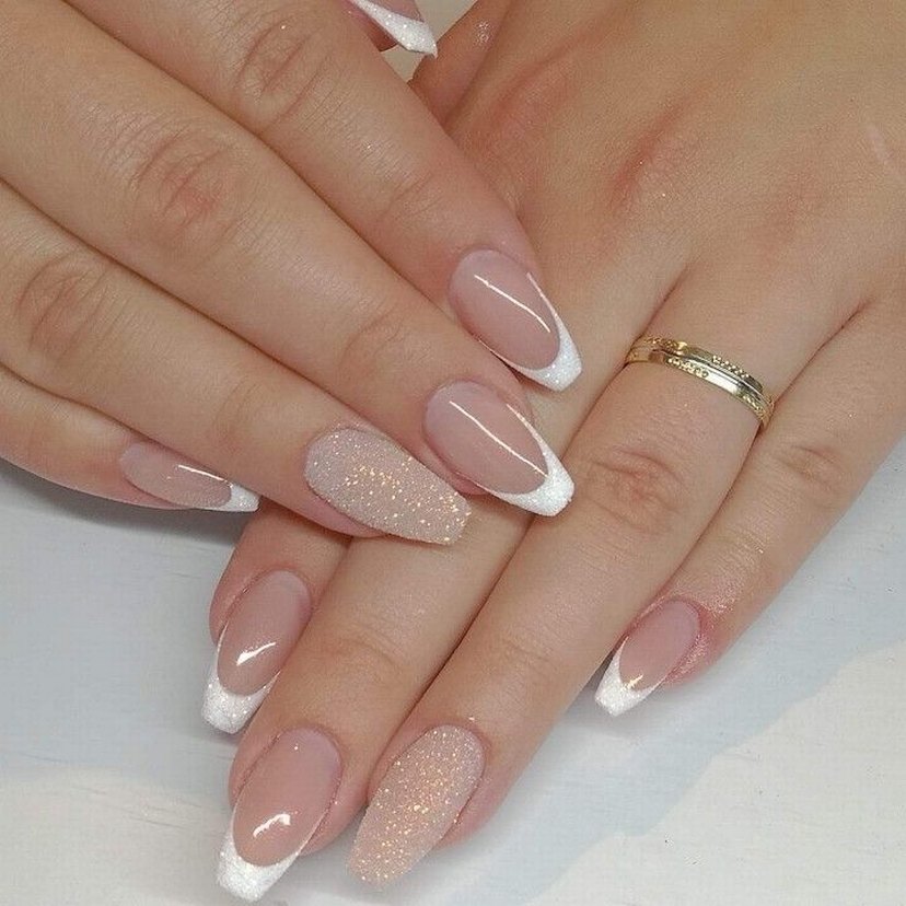 Parlak beyaz Fransız uçlu tırnak süsleri ve bazı tırnaklarda ışıltılı doku bulunur. Zarif ve sade bir görünüm için uygundur. İstenilen modelde tasarımlar yapılır. Her biri tırnak ölçülerinize özel el yapımı işçiliktir ve tekrar kullanılabilir. Fiyat bilgisi ve detaylı bilgi için iletişime geçiniz