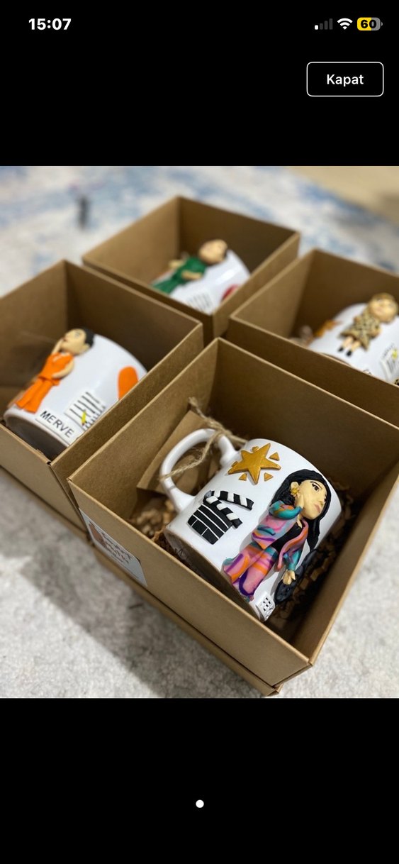Her biri detaylı 3D figürler ve canlı renklerle tasarlanmış, karton kutuda sunulan kişiye özel kahve kupası. ☕