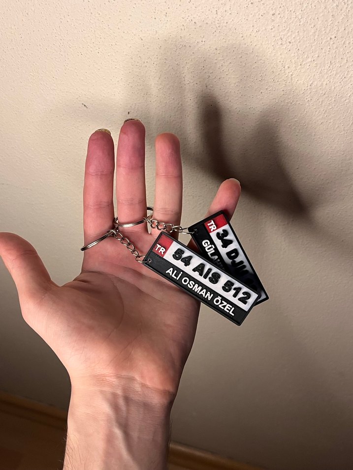 Kişiye özel isimli, siyah plaka tasarımlı anahtarlık, koyu grunge punk tarzını yansıtıyor.