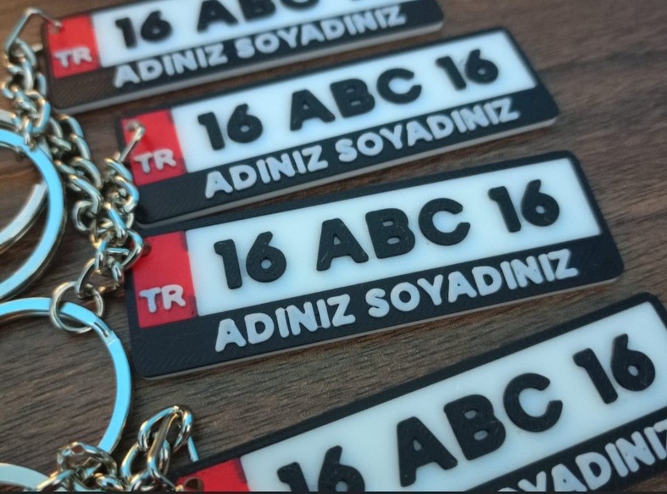 Kişiselleştirilmiş plaka tasarımlı siyah vintage anahtarlık, sade ve karanlık tarzda. 3D PLA malzeme ile üretilmektedir ✨️