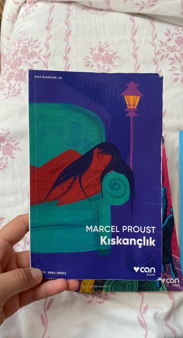 Marcel Proust'un "Kıskançlık" adlı romanı, kıskançlık temalarını işler. Can Yayınları tarafından yayımlanmıştır ve kapakta yeşil bir kanepede uzanan kadını gösterir. 3 kitap beraber gönderilir.