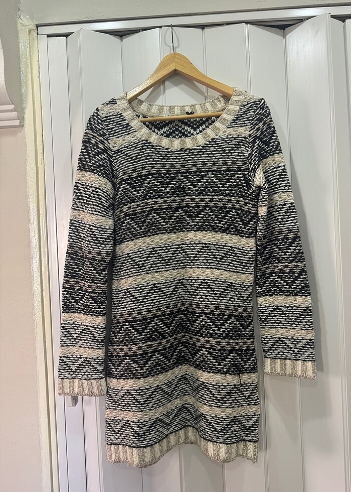 Diz üstü sıcacık tutan triko elbise arasında simli ipler geçiyor