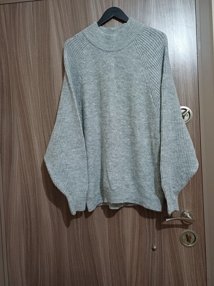 Kışlık 44 beden Gri renkte, uzun kollu ve yuvarlak yakalı, bol kesim kadın sweatshirtü. Rahat ve gündelik kullanıma uygundur. ölçüleri omuz 79 göğüs 69 tek yön basen 65 tek yon