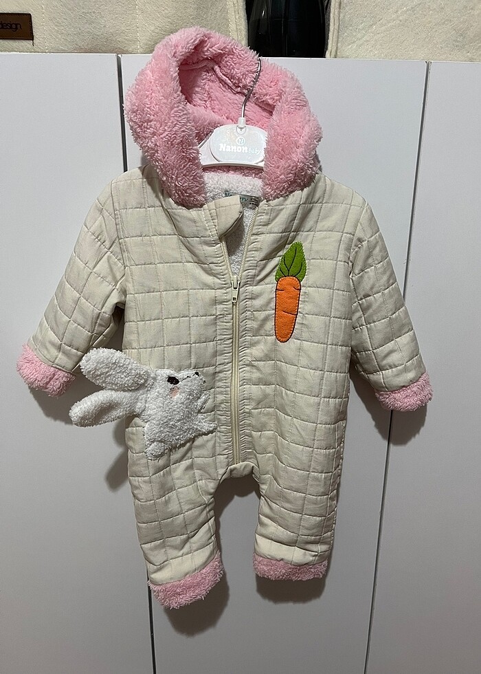 Bir kaç kez giyildi temiz ve hasarsızdır. Kızım 6 kilo boyu 61.5 tam üzerine oturuyor hatta omuzlardan sıkıyor bu ölçülere göre yorumlayabilirsiniz.