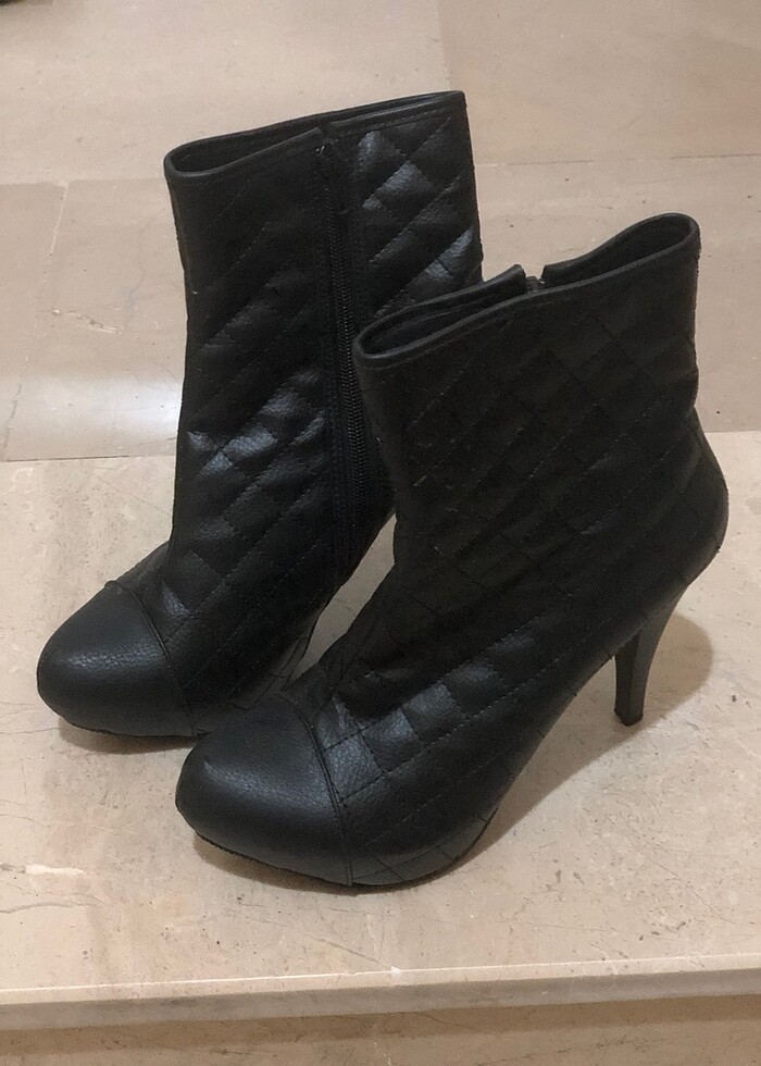 36-37 numaraya uygundur. Ufak tefek deformeler var, kullanıma engel değil. Çok belli değil. Severek giydim. Giymeye de devam ederdim ancak kalça protez ameliyatı olduğumdan artık kullanamıyorum. Topuklu olmasına rağmen çok rahat bir kullanımı var.