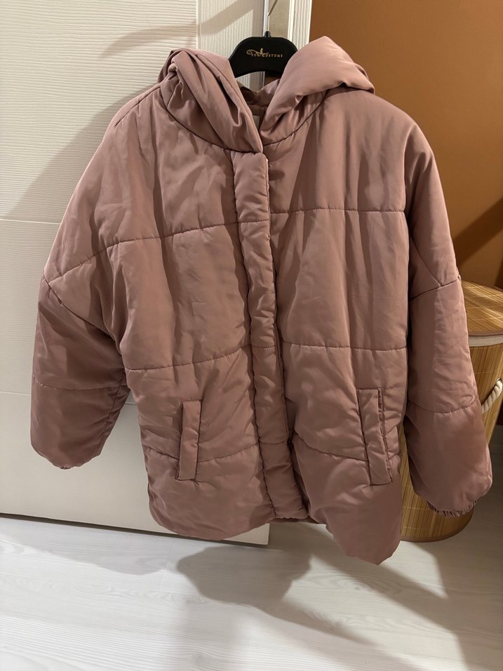 Fermuar ve çıtçıtlı ve bol kesim kadın kışlık mont.