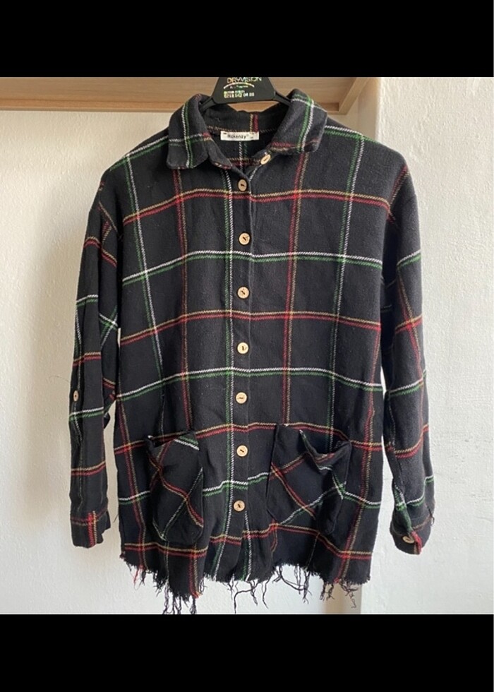 Dış giyim olarak da kullanılabilecek desenli, kalın, alt kısımlarında püskül detaylı, kolları kısa da yapılabilecek gömlek. Kumaşının yapısından dolayı hafif pamuklanması var.