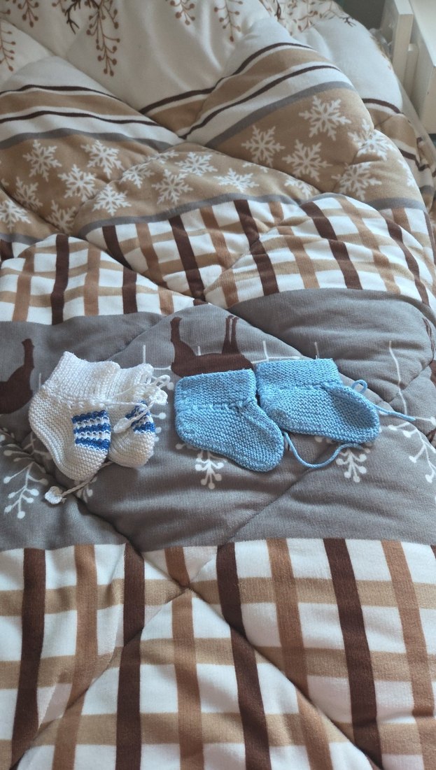 Kışlık Mavi ve Beyaz Örgü Erkek çocuk Patikleri