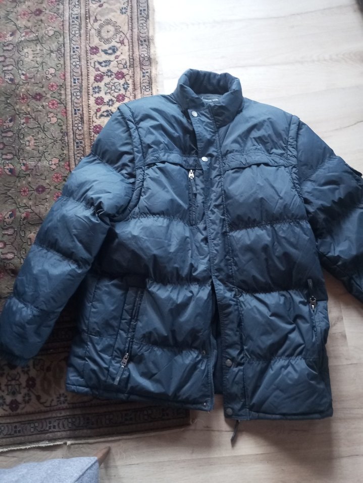 Koyu mavi, bol kesim, uzun kollu ve düğmeli önü olan kadın kışlık mont. Yumuşak ve sıcak tutan kumaşıyla rahat sokak stili için uygun.