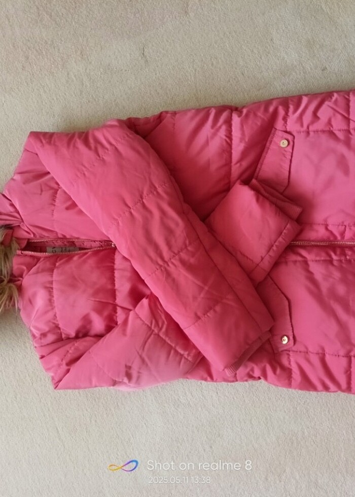Ürün çok az giyildi.11-12 yaşa uygun. Kalça kısmına kadar uzanıyor. Çok temiz.Nar çiçeg. Fotoğraflarda pembe görünuyori