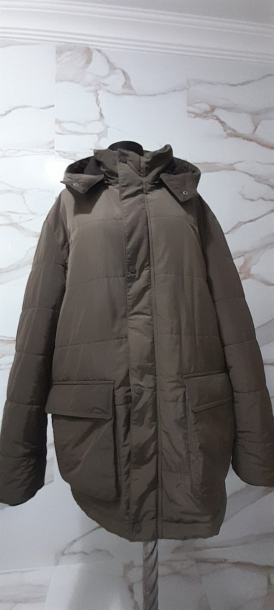Düğmeli ön kısmı ve kesik yaka detaylı erkek kışlık mont. Kahverengi, normal kesim, uzun kollu ve midi boyda, yumuşak sentetik kumaştan üretilmiştir. Sokak stiline uygun sade tasarım, günlük kullanım için idealdir.