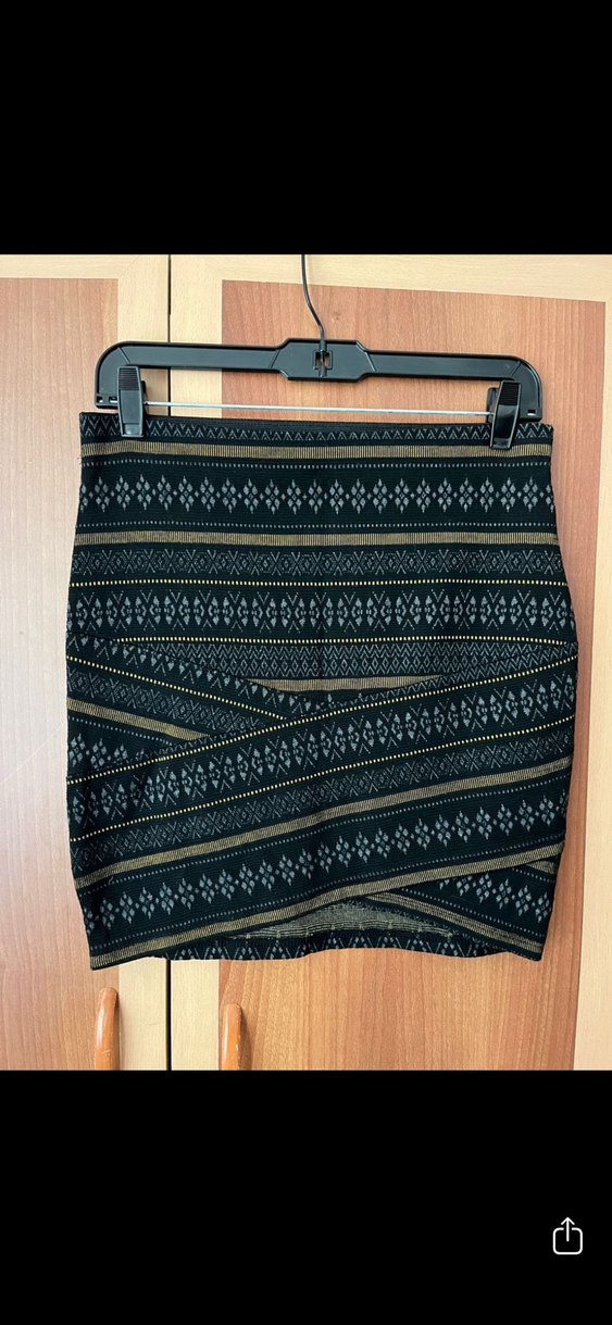 Desenli ve beli lastikli , bohem tarzda siyah etek. Günlük kullanıma uygun, dar kesimlidir. İki üç kez kullandım esnek yapısı vardır 38 beden yazmasına rağmen 34 ve 36 bedene uyumludur