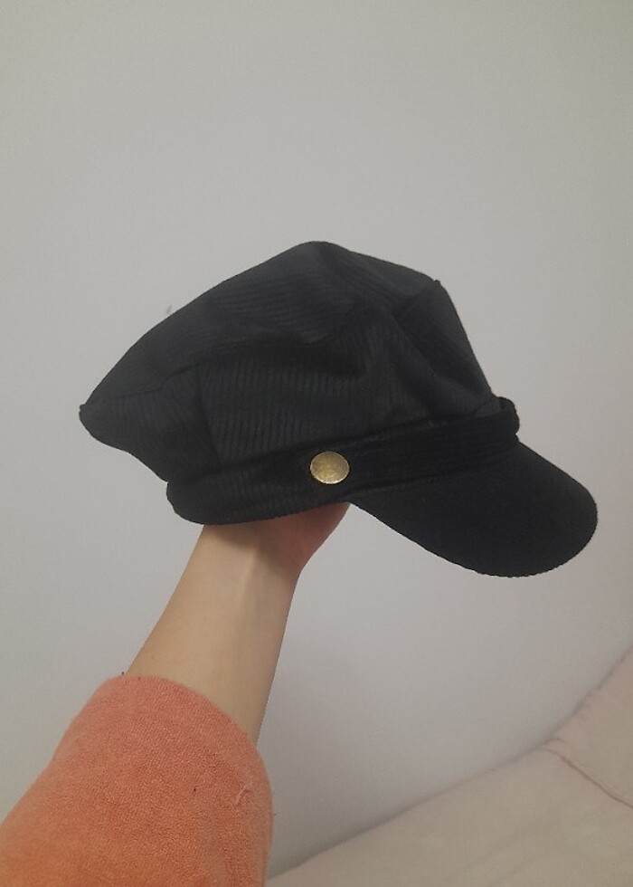 Gold detaylı süet şapka. Oldukça şık bir ürün.