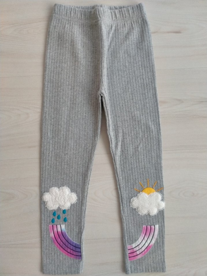 Sıfır üründür. Kışlıktır. Kaşkorse Fitilli Kumaş. 4-5 Yaş- 58 cm. Belirtilen yaş için 1 büyük bedeni tercih edebilirsiniz Kız çocukları için, bulut, gökkuşağı detaylı ve paçalarında süslemeli, rahat ve şık tayt.