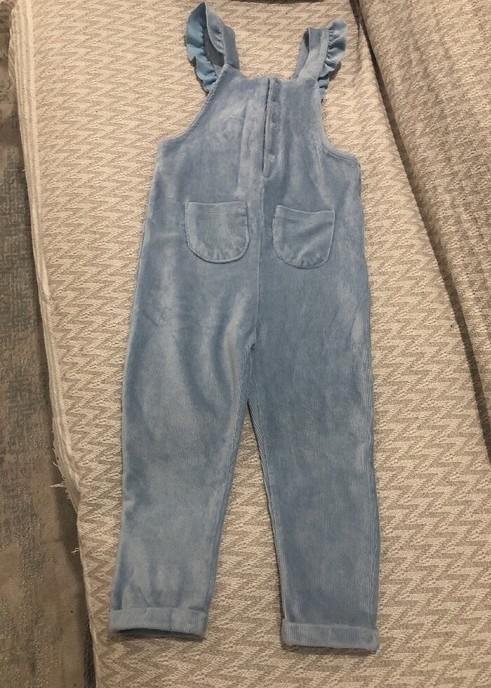 Çok kullanışlı tatlı bir ürün. 24-36 ay yazıyor ama ben 3 yaştan sonra giydirebildim. Bol geliyordu. Tombik bir kızınız varsa 2 yaştan sonra da olabilir. Rengi bebe mavidir. Kadifedir. İçine beyaz bir badi ya da gömlekle çok tatlı oluyor.