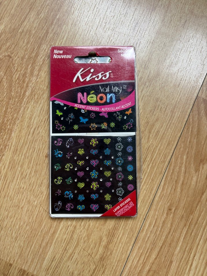 Kiss Neon tırnak süslemeleri, yıldız, kalp ve çiçek gibi renkli neon desenlere sahiptir.