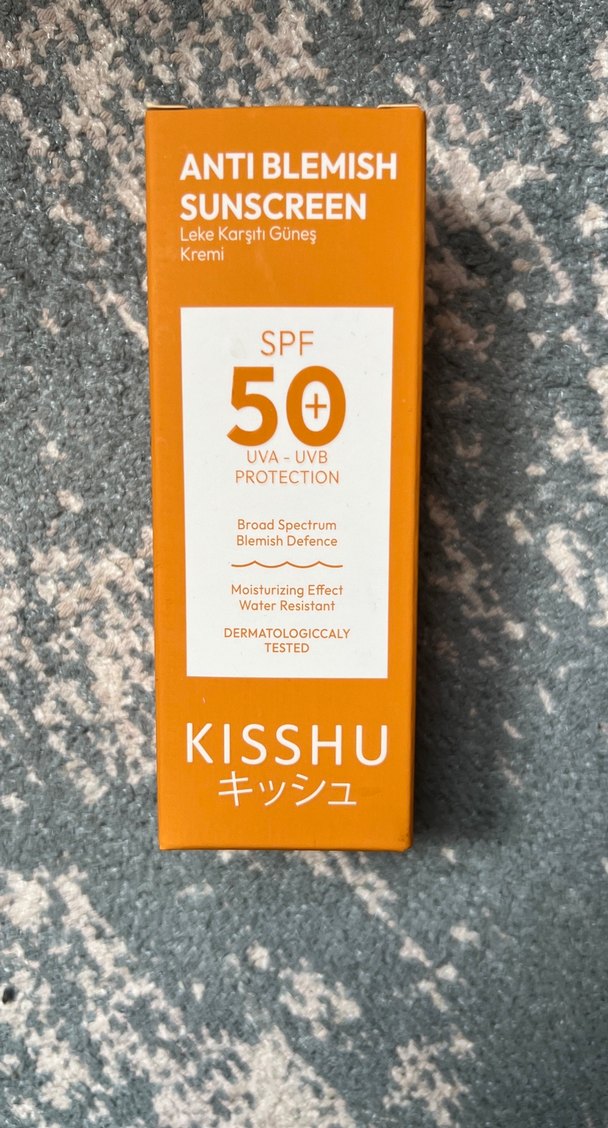 Kisshu Anti Blemish Güneş Kremi, SPF 50+ geniş spektrum UVA-UVB koruması sağlar. Nemlendirici ve suya dayanıklıdır, dermatolojik olarak test edilmiştir. ☀️