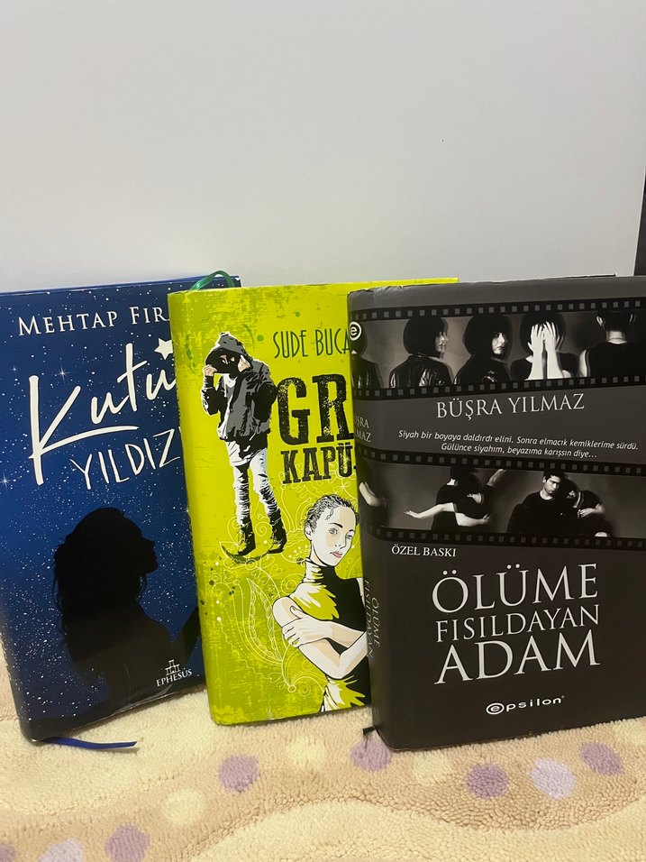 TEMSİLİ FİYAT Ölüme fısıldayan adam, kutup yıldızı, gri kapüşonlu kitapları hepsi tertemiz sadece gri kapüşonlu kitabında son iki sayfada gördüğünüz kalemle çizilmiş iki sayfa bulunmakta onun dışında hiç bir yırtık,eksik sayfa,leke bulunmamaktadır hepsi temizdir hiç bir defosu yok