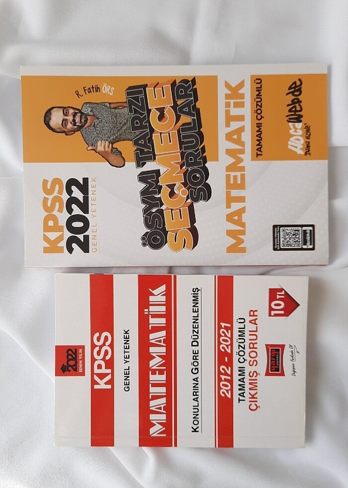 ÖSYM tarzı seçmece sorular tamamı çözümlü matematik soru bankası. Hiçbir işaretleme yoktur. Konularına göre düzenlenmiş kpss matematik çıkmış sorular kitabı hediyeli. Hediye kitapta geometri ve problemler tamamen boştur, öncesinde biraz işaretleme var.