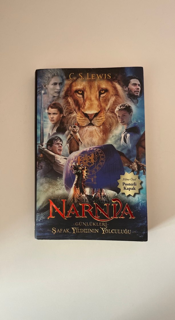 C.S. Lewis'in Narnia Günlükleri: Şafak Yıldızının Yolculuğu adlı romanı, posterli kapaklıdır ve büyülü bir yolculuğu anlatır.