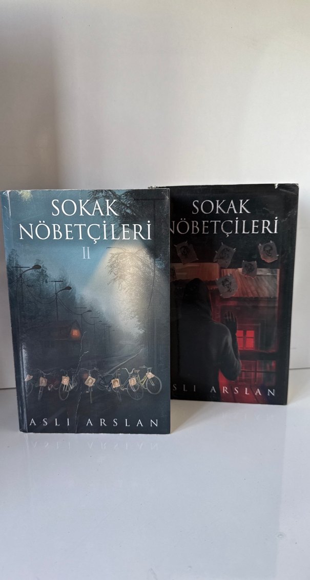 Aslı Arslan imzalı 'Sokak Nöbetçileri' adlı iki roman gizemli ve atmosferik kapaklara sahip. Not: sadece bu kitapda biraz hasar var ama okumaya engel değil!! Bir tanesi ciltli