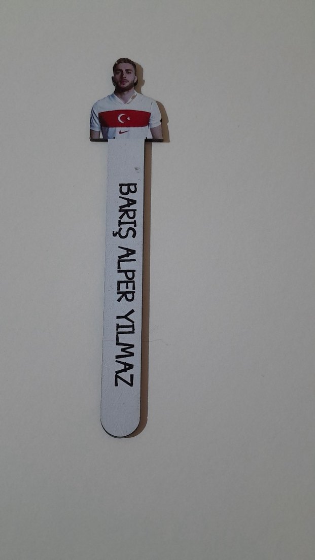 Üst kısmında küçük figür ve üzerinde BARIS ALPER YILMAZ yazan beyaz kitap ayracı