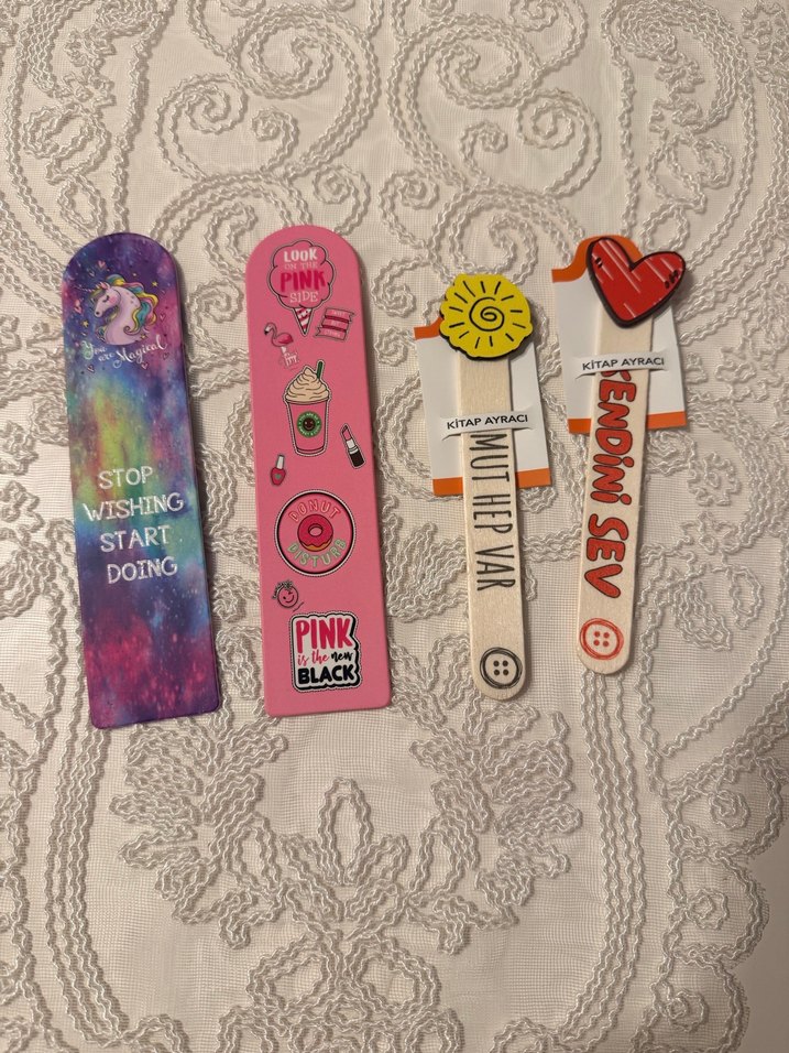 Canlı desenlere sahip renkli kitap ayraçları seti. Hiç kullanılmamıştır.