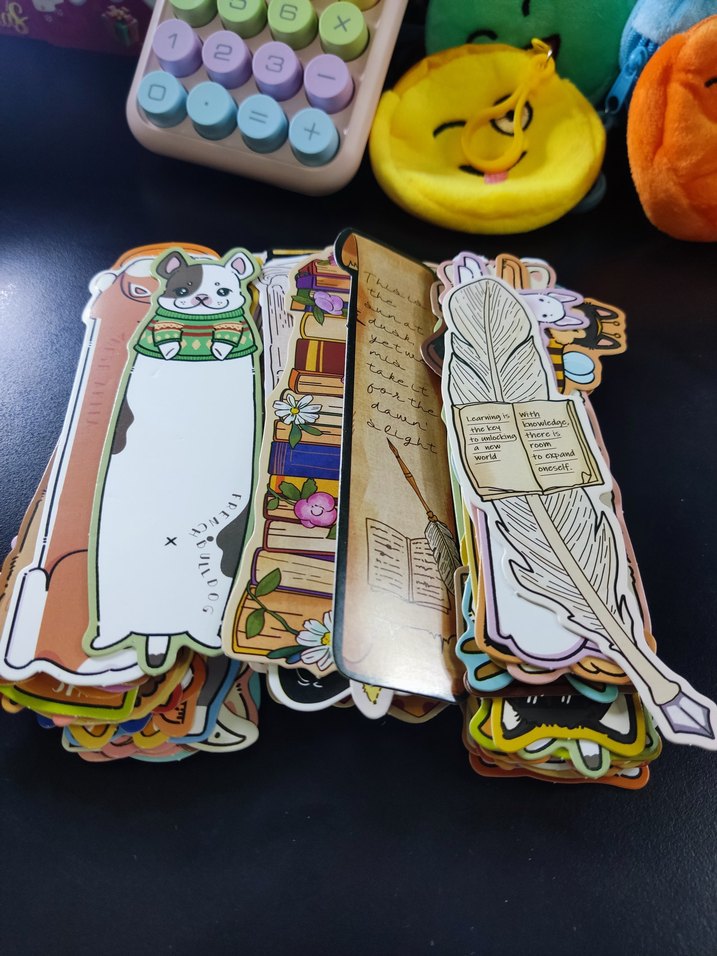 Çizgi roman hayvanlar, kitaplar ve tüy kalem desenli çeşitli not kağıtları, yaratıcı notlar için uygundur.