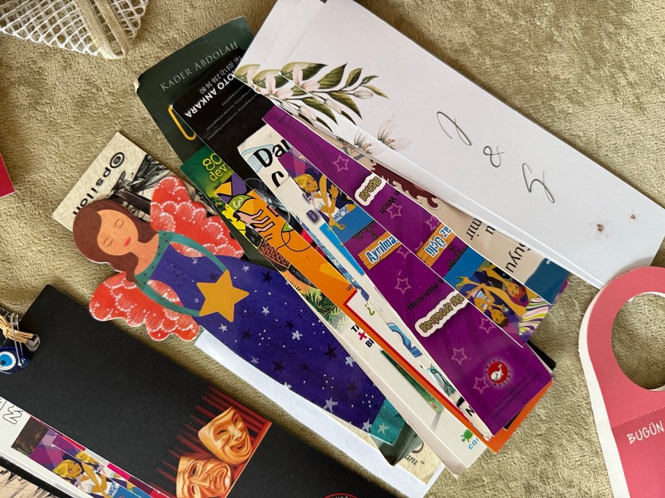 Çeşitli renkli kapaklara sahip, ilkokul öğrencileri için uygun kitap seti.