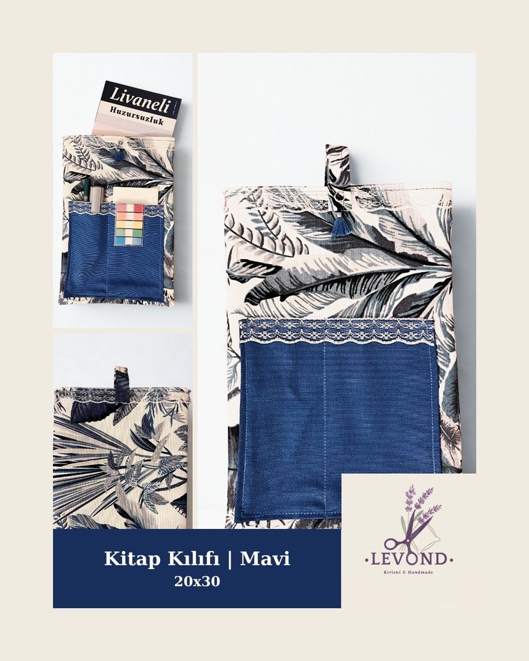 Levondmade’den Kitap Kılıfı Ölçüleri: 20x30 cm Su ve yağ itici özellikli kumaş Kullanışlı 3 bölme -kargo ücreti dahildir-