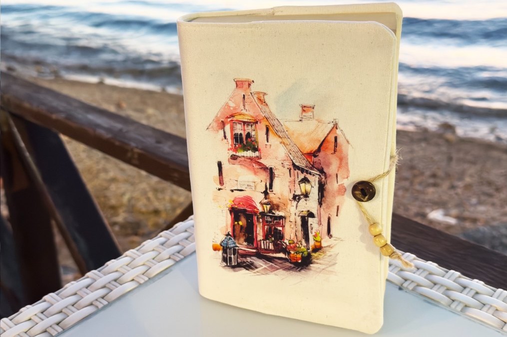 Kitap kılıfı Suluboya Ev Desenli kitap kılıfı